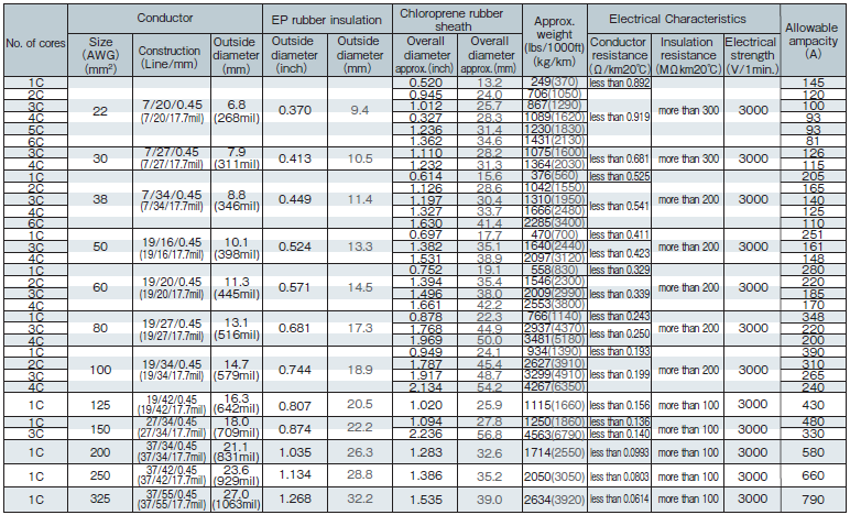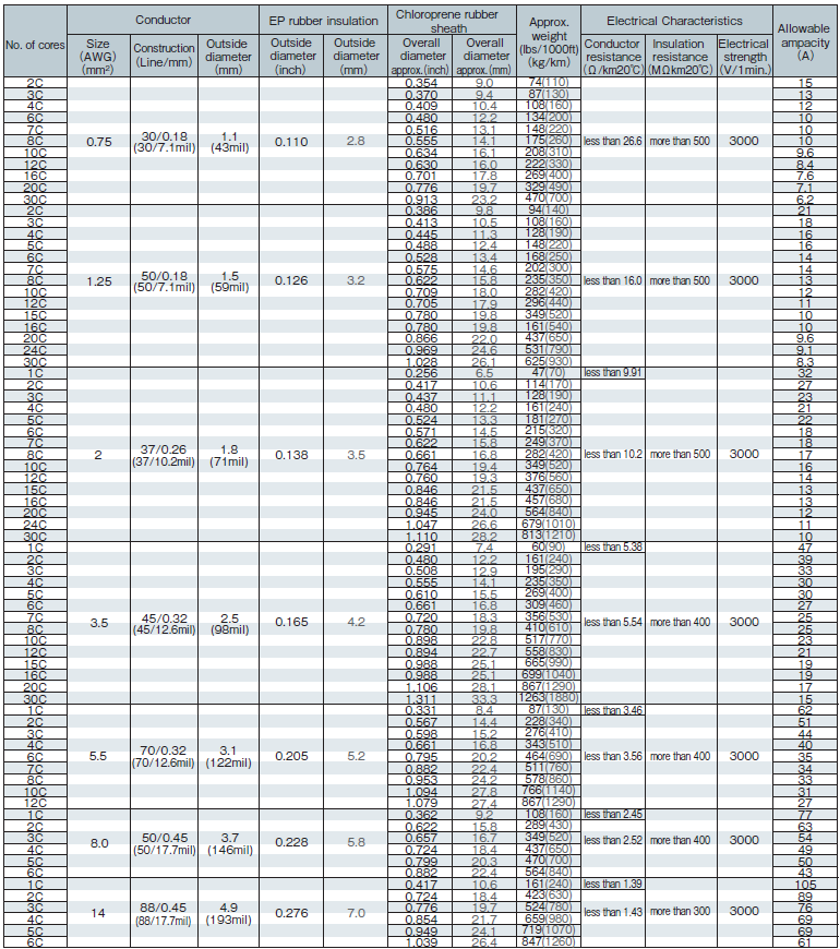 Class 2 EP rubber insulated chloroprene rubber sheathed flexible cables