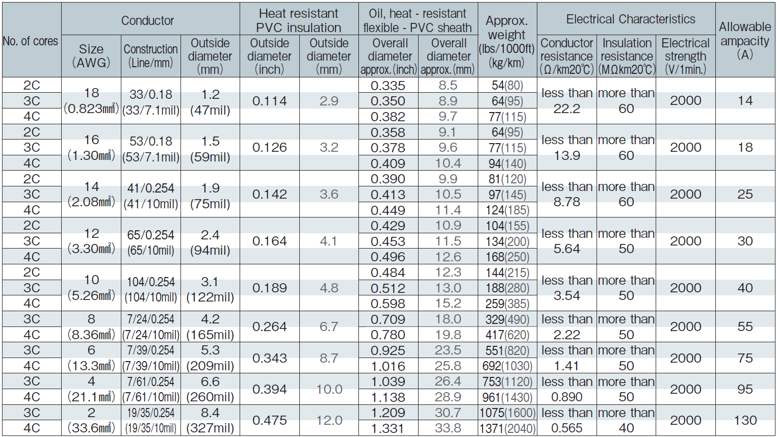 Oil, heat resistant and Flexible PVC sheath material is used.