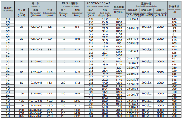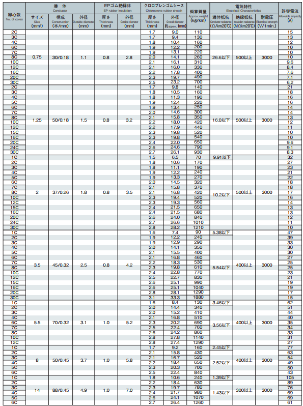 2種EPゴム絶縁クロロプレンゴムキャブタイヤケーブル