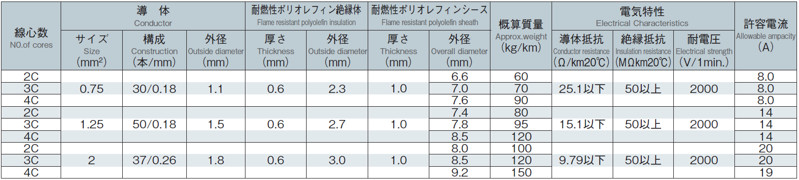 絶縁体・シースにノンハロゲン耐燃性ポリオレフィンを使用